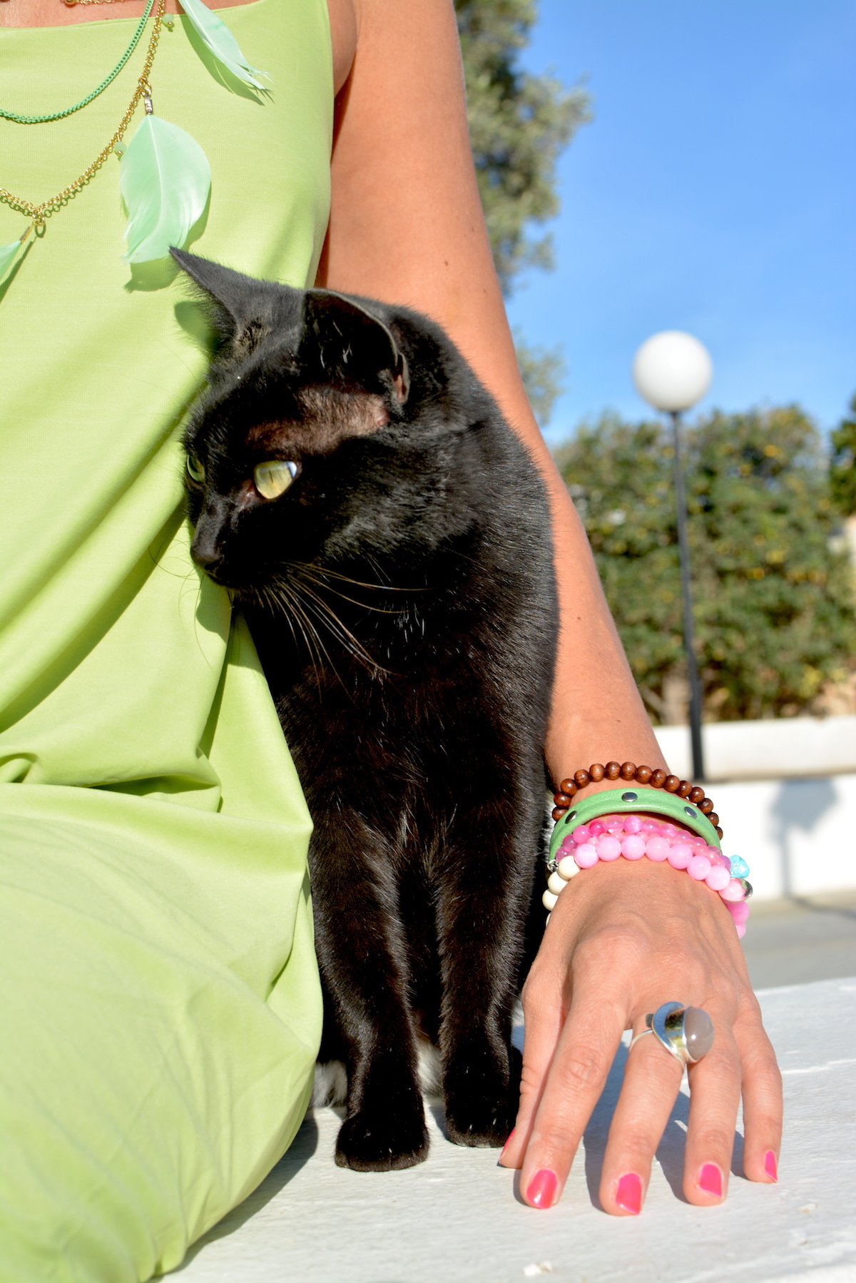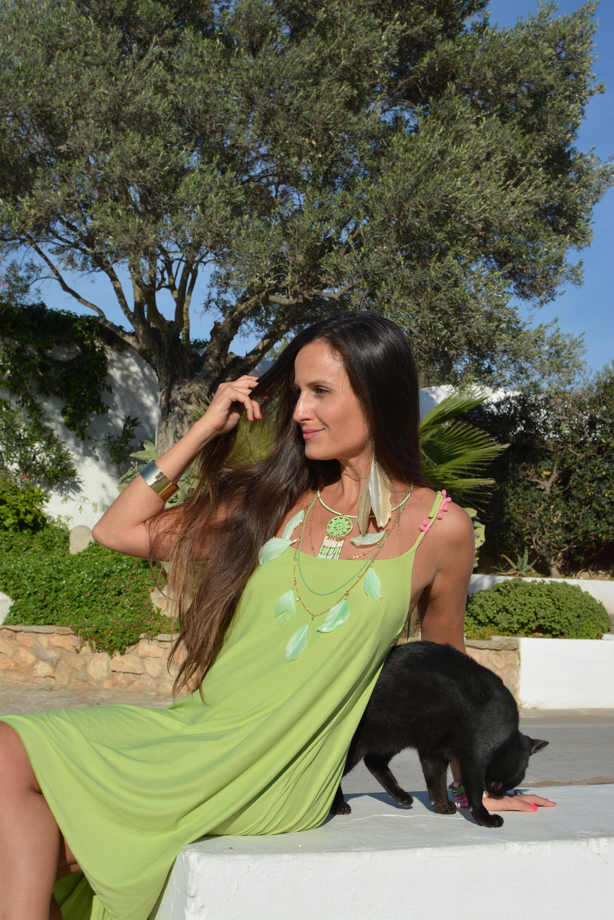 E’ bello uscire per fare un giro e delle foto ed incontrare un piccolo gattino nero che vuole stare sempre con te. Come sai sono una super amante dei gatti e di tutti gli animali, quindi sono stata ben felice di averlo sempre con me. Ero nel piccolo e grazioso paesino di san Augustì che già hai visto in altri miei post e questa volta indosso un delizioso vestito color verde di Sujey Designer.