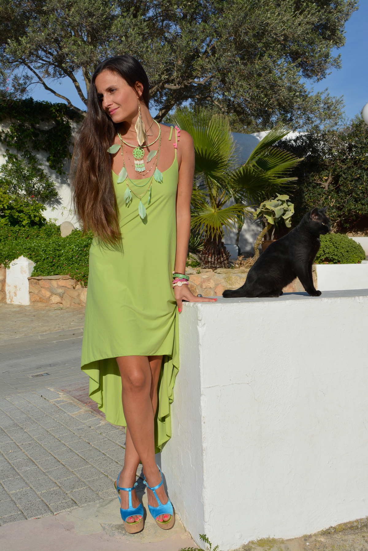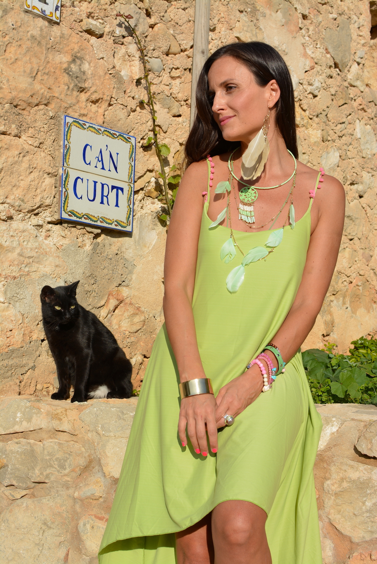It’s great to go out for a walk and some photos and meet a little black kitten who wants to stay with you. As you know I’m a super Cats lover, so I was very happy to have him with me. I was in the small and pretty village of St. Augustì that you’ve already seen in my other posts and this time I was wearing a delightful creation by Sujey Designer.