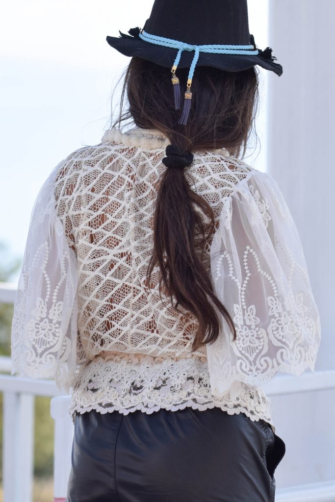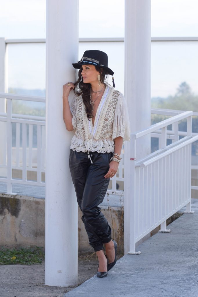 Invece di un total look romantico ho deciso di abbinarla con pantaloni neri lucidi in finta pelle per dare un stile romantic-rock.
