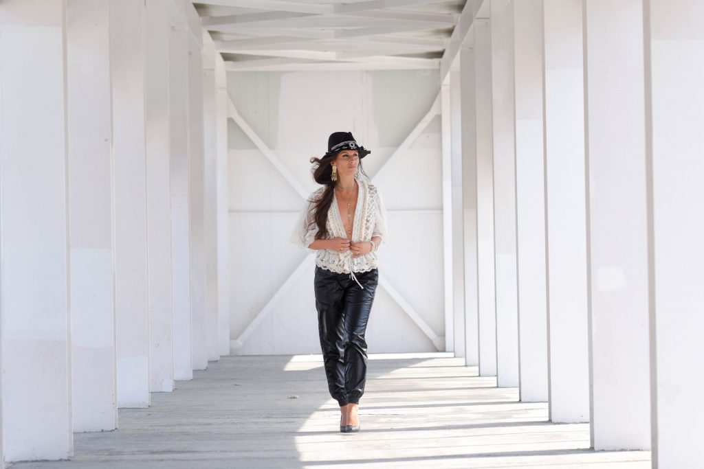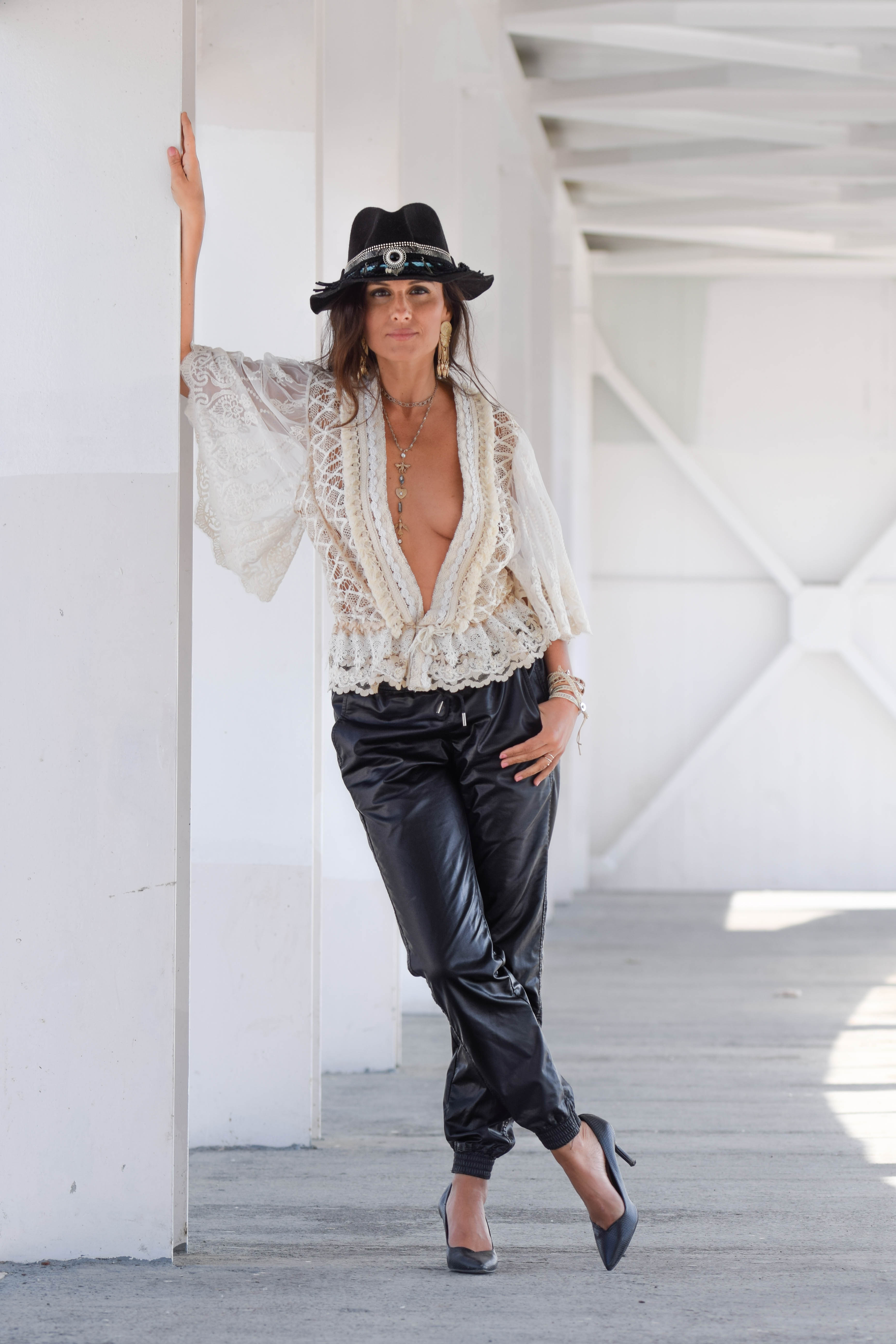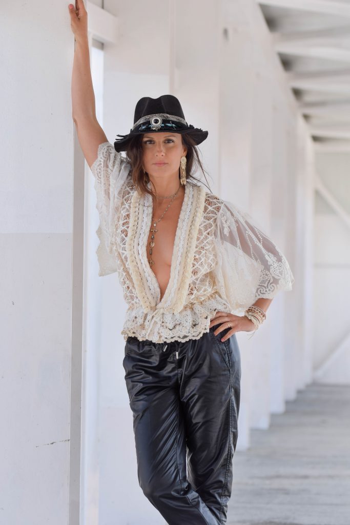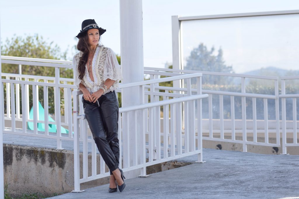 Lot of changes are coming but for sure I still want to show you the fashion beauties we have here on the island and best way to star again with my favourite designer, Linnea Ibiza, with this beautiful handmade shirt I’m wearing with black fake leather trousers.