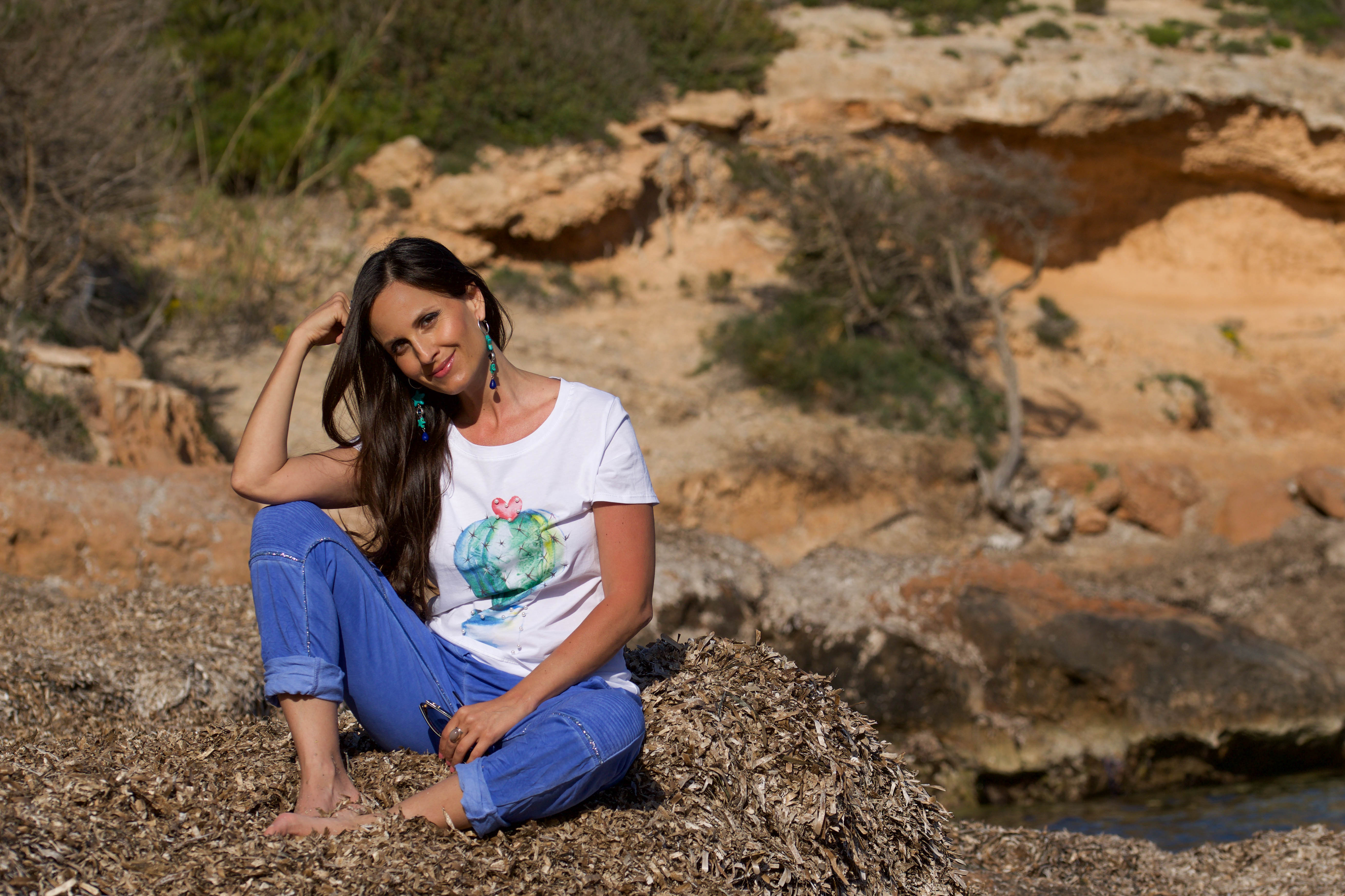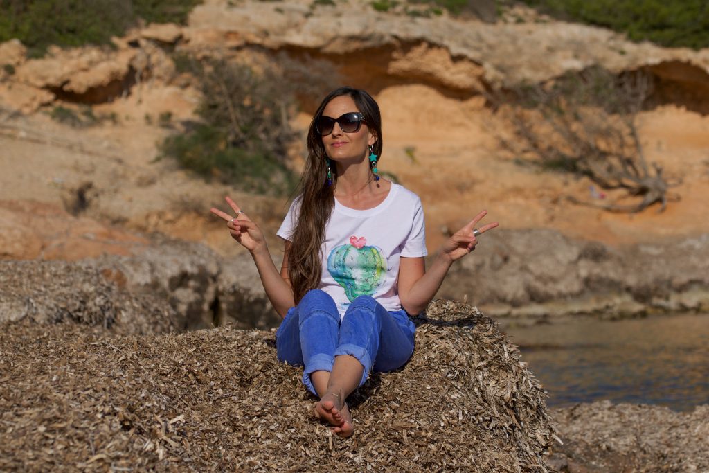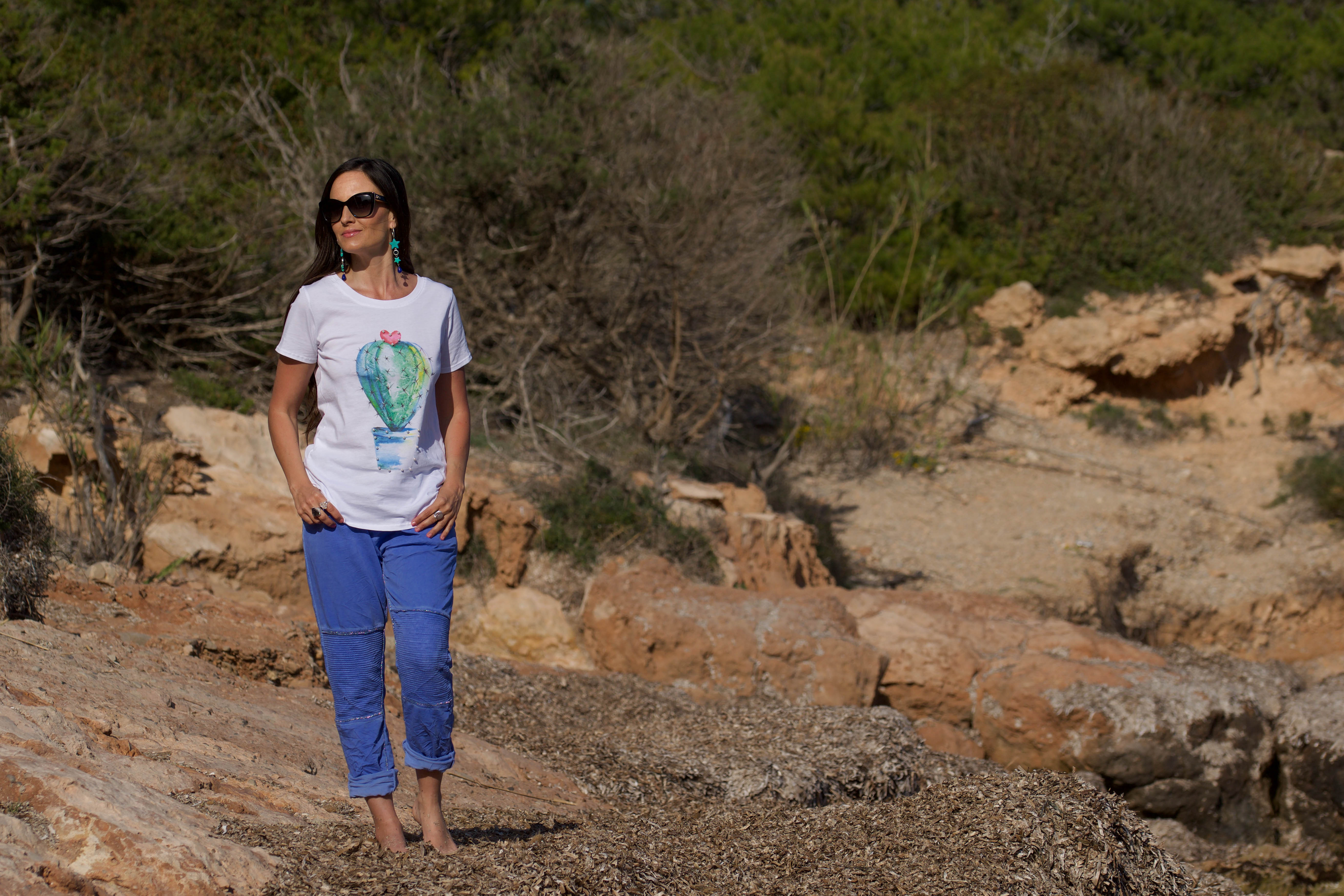 Today I wear a very casual look by Onax Ibiza with a funny t-shirt and indigo blue cotton pant which are so comfortable. It’s a fun look, don’t you think?